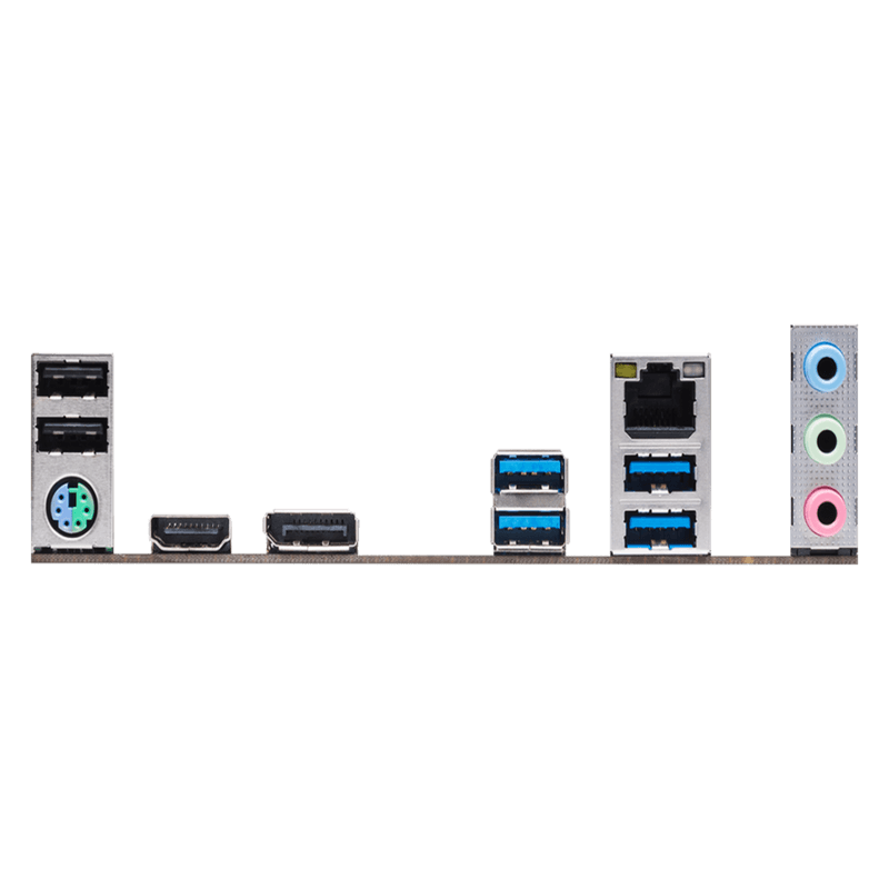 HDMI, DisplayPort, D-Sub, 2× USB 3.2 Gen1, 2× USB 3.2 Gen2, 2× USB 2.0, RJ-45, audio 7.1